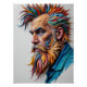 Immergez-vous dans un portrait coloré à l'huile coloré et éclatant, d'inspiration croisée, rendu dans un style de papier 3D de détail moyen. Le sujet est un homme patiné, au visage sévère, dans un profil de trois quarts, regardant attentivement vers le côté. Ses poils volumineux, balayés par le vent et sa longue barbe à écoulement, sont méticuleusement construits à partir de morceaux de papier coloré individuels, stratifiés et pliés pour créer un volume texturé et un mouvement dynamique. Les traits faciaux (pommettes prononcées, nez et sourcils) sont également fabriqués à partir de papier superposé, avec des couches visibles et des bords pliés ajoutant profondeur et caractère. L'application expressive de peinture à l'huile présente des touches audacieuses et des teintes riches et mélangées qui rehaussent l'aspect tactile et artisanal des formes de papier. L'interaction de la lumière et de l'ombre met en évidence les bords coupés, les couches et les surfaces texturées, mettant l'accent sur la nature tridimensionnelle construite de la scène. Placée contre un arrière - plan propre et subtilement texturé, cette oeuvre combine magnifiquement les qualités expressives de la peinture à l'huile avec la complexité tactile du papier, donnant lieu à un portrait saisissant et coloré plein de profondeur, d'énergie et de charme artisanal.