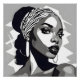 Ce tableau numérique présente le portrait d'une femme noire. La femme regarde directement le spectateur, et elle a une expression calme et confiante. Sa peau est riche, brun foncé, et ses cheveux sont coiffés dans un style simple