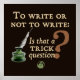 Juste pour tous les écrivains là-bas, cette parodie de "Être ou ne pas être" de Hamlet est retravaillée comme "Écrire ou ne pas écrire : est-ce une question astucieuse ?", complétée par une quill élisabéthaine et un pot d'encre.