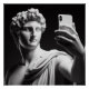 Un buste en marbre blanc d'un Grec ancien prenant le selfie avec son téléphone portable