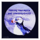 Un tableau numérique d'un Puffin de l'Atlantique, avec les vagues de l'océan qui s'écrasent sur le rivage de pierre. L'oeuvre est en cercle. Il y a une teinte violette jeté sur l'image. Au-dessus de la tête du macaron dans une police violette se trouve : "Prendre trop a des conséquences". Copyright ©2024 Kimberly J Tilley. zazzle.com/store/developingnature