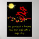 Affiche du proverbe chinois, "Le voyage de mille milles doit commencer par une seule étape". Dragon frappant à la lumière de la lune. Ça aurait l'air génial dans n'importe quelle pièce.