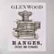 Publicité vintage pour Glenwood Stoves and Furnaces en noir et blanc. Remarque : l'agrandissement de cette image peut entraîner une mauvaise qualité d'impression.