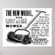 Cette publicité vintage dans un journal de tondeuse à gazon présente une jolie illustration tirée à la main d'une tondeuse à gazon rétro et d'une police de caractères ancienne expliquant à quel point le gadget est merveilleux. Tous composés dans une pub de magazine funky et à l'ancienne.