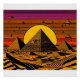 L'IA a créé une interprétation de ma description représentant trois grandes pyramides dont la plus haute est fortement décorée avec de plus petites pyramides disséminées dans le paysage désertique au coucher du soleil à l'horizon.