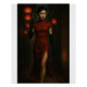 Une affiche cinématographique de style rétro avec un assassin chinois de belle beauté mortelle dans un qipao rouge profond (cheongsam) avec une fente haute, subtilement brodée avec des codes cachés ou des motifs de dragon. 🎁 Vous recherchez un cadeau unique ? Cette beauté mystérieuse ravira les amateurs d'art.