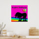 Une affiche d'anniversaire sur le thème de la licorne, brillante, audacieuse et belle, avec une licorne mystique noire et un arrière - plan arc-en-ciel. La décoration murale parfaite pour votre fête d'anniversaire. Customisez avec le nom de votre enfant !