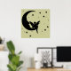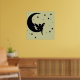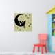 Une silhouette d'une fée assise sur la lune, entourée d'étoiles. N'hésitez pas à changer la couleur arrière - plan pour mieux assortir votre mur et votre décoration.