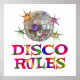 Un amateur de discothèque sait que la musique disco et la danse sont les meilleures. Partagez vos sentiments avec ce design coloré avec une boule disco, des étoiles et les mots - Disco Rules.