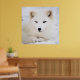 Photo d'un mignon renard blanc arctique reposant dans la neige. L'animal a de la fourrure blanche et des yeux bruns et vous regarde. Une vraie diva !