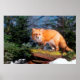 Poster Renard roux sur une bûche