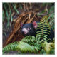 Un diable de Tasmanie, dissimulé au milieu de fougères luxuriantes, dégage un air de mystère dans son habitat naturel, capturant un moment de charme sauvage insaisissable.