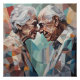Cette pièce géométrique représente un couple âgé dans un moment tendre, avec des triangles colorés dans des tons doux et vibrants. Les formes entrelacées symbolisent une union durable, tandis que les couleurs mélangées reflètent la profondeur de leurs émotions et la beauté d'une vie partagée.