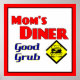 Maman's Diner bonne cuisine rétro grasse disant en lettres rouges cabossées avec un hamburger géant. Un restaurant faisant la publicité d'un thème artistique pour maman ou votre cuisinier à courte commande préféré.
