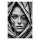 Un dessin surréaliste au crayon du visage d’une femme qui émerge à travers des couches de tissu déchirées et déchirées. Ses yeux intenses, ses lèvres piquées et ses pommettes hautes sont doucement ombragés, ce qui transporte l'émotion qui traverse la surface. Les rubans abstraits environnants de tissu déchiré ajoutent tension, mystère et une qualité dramatique et introspective.