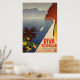 Affiche de voyage montrant la vue d'un bateau sur le lac de Garde, avec un citronnier coloré, et les montagnes au loin.
