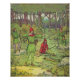 peinture vintage de capot rouge dans le folklore anglais et un héros populaire dans les temps médiévaux, avec ses hommes joyeux dans les bois pratiquant le tir à l'arc pendant que les hommes s'assoient, se tiennent et regardent.