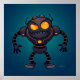 Illustration d'un robot en colère prêt au combat. Ce robot méchant et méchant est gris foncé avec des yeux et des reflets oranges.