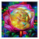 Une peinture digitale fascinante d'un rose qui déborde d'énergie psychédélique et de teintes arc-en-ciel. Les pétales roses vifs s'enroulent autour d'un coeur doré, créant ainsi une pièce centrale florale surréaliste.