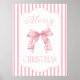 Affiche de Noël festive avec un audacieux ruban rose et un arrière - plan rayé rouge et blanc. Parfait pour ajouter un charme de vacances gai à votre salon, entrée ou événement saisonnier.
