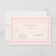 Cette carte de réponse mariage aux fraises douces rose, gris clair et crème pâle présente une atmosphère vintage et désuète, avec un design de lettre à l'ancienne, incluant des éléments de script élaborés, une bannière décorative, des étoiles et une mousse tourbillonnant. L'invitation soignée s'inspire à la fois du design vintage et d'affiches design. Le texte se lit comme suit : "Répondez S'il Vous Plaît" sur le devant et "La Faveur d'une réponse est demandée par" suivi de votre texte personnel au verso. Cette suite d'invitation est parfaite pour toute personne recherchant des invitations de mariage fantaisistes, historiques, vintages ou uniques, uniquement pour les réceptions.