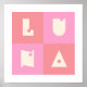 Poster du nom de bébé à quatre lettres pour une fille (nouveau-né) et ses parents dans des couleurs beiges roses chaudes. Les 4 lettres sont personnalisables s'adaptant au nom des enfants. Les lettres sont choisies dans une police mignonne de sorte qu'elle ait l'air figurative. Les couleurs peuvent être éditées selon votre souhait.