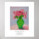 Ces roses enivrants et odorants venaient d'un buisson rose d'escalades en parfaite floraison lors d'une journée ensoleillée de juin à Chicago. Cette affiche a été créée à partir de ma peinture à l'huile d'origine, qui met en valeur les roses à travers une application de peinture lourde et très texturée dans plusieurs tons de rose et de rouge. Des coups de soleil jaunes mélangés dans le vase donnent un indice aux tiges des roses tout en suggérant le soleil du milieu de l'après-midi qui filtrait à travers le verre vert lorsque ce tableau a été créé. Des touches de rose dans l'arrière - plan lavande ainsi que d'épaisses touches de rose clair à l'arrière de la table, de vert à droite du vase, et de rose foncé au premier plan aident à harmoniser et à unifier cette pièce parce qu'ils répètent les couleurs dans les fleurs et le vase.