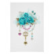 Clé d'or antique aux roses turquoise tendance décorée de feuilles d'or blanc et de perles rose et bleu. Couleur tendance. Rose turquoise. Blanc doré. Tiffany bleu.