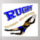 Joueuse de rugby féminin. Une jeune fille de rugger saute pour attraper la balle, avec la devise de l'athlète : "Rugby Natural Selection". Croustillant. Choisissez votre propre couleur arrière - plan. Ce dessin est disponible en plusieurs sélections de couleurs ; cette version est bleu & or uniforme & texte. Si vous ne voyez pas les couleurs de votre équipe, envoyez-moi une note et je la créerai pour vous.