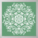 Ce mandala blanc est assis sur un arrière - plan gris-vert. Les couleurs sont naturelles et relaxantes. Partie de la collection Pras Mandala.
