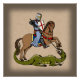 Bien que souvent dépeint comme un chevalier médiéval, Saint George était une tribune militaire de la fin du 3e et début du 4e siècle (martyrisé vers 303). Selon la légende, George a tué héroïquement un dragon qui terrorisait la campagne autour de Silena en Libye. Ce portrait particulier du guerrier-saint par Richard H. Fay le décrit armé comme un chevalier médiéval du XIIIe siècle.