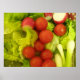 This beautiful print features a photograph of a mixture of salad ingredients in a colander. The tasty photo includes tomatoes, radishes, spring onions and lettuces.