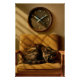 Sardine O’clock Dreamtime – Surreal Cat Art. A dreamy, surreal image where time itself revolves around a cat’s stomach. Here, a dozing feline curls on a vintage chair beneath a clock whose hands are sardines, humorously announcing it’s always dinnertime in the world of dreams. Golden light and mid-century tones lend a nostalgic, cozy feel to this tender, whimsical composition celebrating feline daydreams.