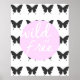 Design élégant noir, blanc et rose avec arrière - plan en tuile papillon silhouetté. La superposition en cercle rose sert de toile pour le lettrage calligraphique blanc, permettant au message "Sauvage et Libre" de s'afficher. Parfait pour toute chambre dans un dortoir ou une maison.