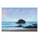Paysage calme et serein avec nuages doux et plage de sable fin.