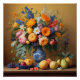 Apportez une touche de beauté classique dans votre maison avec cette magnifique image d'une vie calme. L'oeuvre d'art présente un magnifique bouquet de fleurs aux couleurs vives, notamment des gerbères orange, des delphiniums bleus et des pions roses, combinés à des fruits savoureux tels que des pommes, des poires et des raisins. Tout est élégamment placé dans un vase bleu ornemental, sur un fond chaleureux. Cette composition intemporelle ajoute une touche de sophistication et d'élégance à chaque espace.