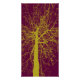 Une silhouette d'arbre en hiver aux couleurs jaune et rouge foncé.