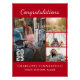 Photo collage script graduation poster pour la nouvelle diplômée. Dispose de 4 photos du diplômé, et le mot "Félicitations" est mis. Ajoutez leur nom, le collège scolaire et l'année de classe de l'obtention du diplôme en cliquant sur le bouton "Personnaliser".