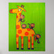 Cette affiche montre des singes Jouant avec leur ami la Giraffe...oeuvre de Carol Zeock
