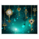 Or, clés antiques avec engrenages et cadrans accrochés sur chaînes dorées sur arrière - plan vert lumineux.