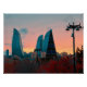 L'horizon de Bakou, les tours de flammes et l'affiche des arbres de Noël.