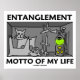 Montrez votre attitude désinvolte de la mécanique quantique envers la vie avec cette affiche avec l'enchevêtrement quantique, avec le chat de Schrodinger dans un état vivant ou dans un état mort (c'est-à-dire le paradoxe) avec le truisme scientifique suivant disant "Entanglement Motto Of My Life". Poster d'humour geek pour tous ceux qui connaissent le monde quantique !