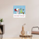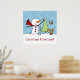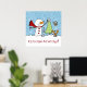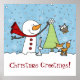 Un mignon bonhomme de neige dans une zone tenue à la neige arrive au sommet d'un petit pin pour mettre un flocon de neige sur le dessus. Des animaux des bois composés de chouette, de renard et de lapin regardent dans cette scène hivernale. Personnalisez ce design de Noël comme vous le souhaitez. Design original par Christie Black de Creations from the Heart.