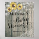 Modèles de pancartes de bienvenue pour Baby Shower - Tournesols vintage chic et dentelle élégante sur fond en bois rustique.