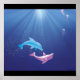 Une photo digitale vibrante de deux dauphins s'amusant dans l'océan avec des méduses se frayant dans l'arrière - plan. Une photo colorée pour la chambre d'un enfant, amoureux des dauphins et tous ceux qui aiment ce qu'ils voient :).