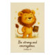 Ajoutez une touche de foi et d'encouragement à votre maison, salle de classe ou nurserie avec ce charmant design de verset de la Bible chrétienne. Avec le verset « Soyez forts et courageux. » (Josué 1:9), cette œuvre d'art montre un adorable lion tenant la Sainte Bible, entouré d'étoiles dorées chaudes.
