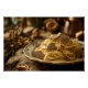Une assiette riche et aromatique de Spaghetti au beurre de truffe, garnie de fines tranches de truffes pour une expérience gourmande italienne. Idéal pour les blogs gourmets, les restaurants haut de gamme et les amateurs de cuisine italienne.