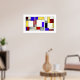 Reproduction poster adapted from a vintage architechtural painting by Theo Van Doesburg, Dutch painter of the early 20th century, and founder and leader of the De Stijl movement in art. Influenced by Van Gogh, Kandinsky and Mondrian, as well as the Bauhaus movement, Van Dosburg sought to bring his Utopian vision of abstract art to paintings, architecture, design and typography. These three rectangular stained glass painting represents his reductionist vision of line, form and color. Predominate colors are red, blue, white, yellow and gray. From the Wall Art Shoppe.