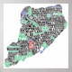 Une carte calligramme de l'arrondissement de New York, Staten Island, avec les noms de quartiers, parcs, etc. tous inclus pour faire cette carte typographique attrayante.