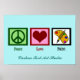 Peinture Peace Love avec un joli signe de paix, coeur rouge et une palette d'art mignon. Une belle impression turquoise à suspendre dans une salle de jeux pour enfants ou dans un studio d'artiste. Customisez avec votre propre texte.